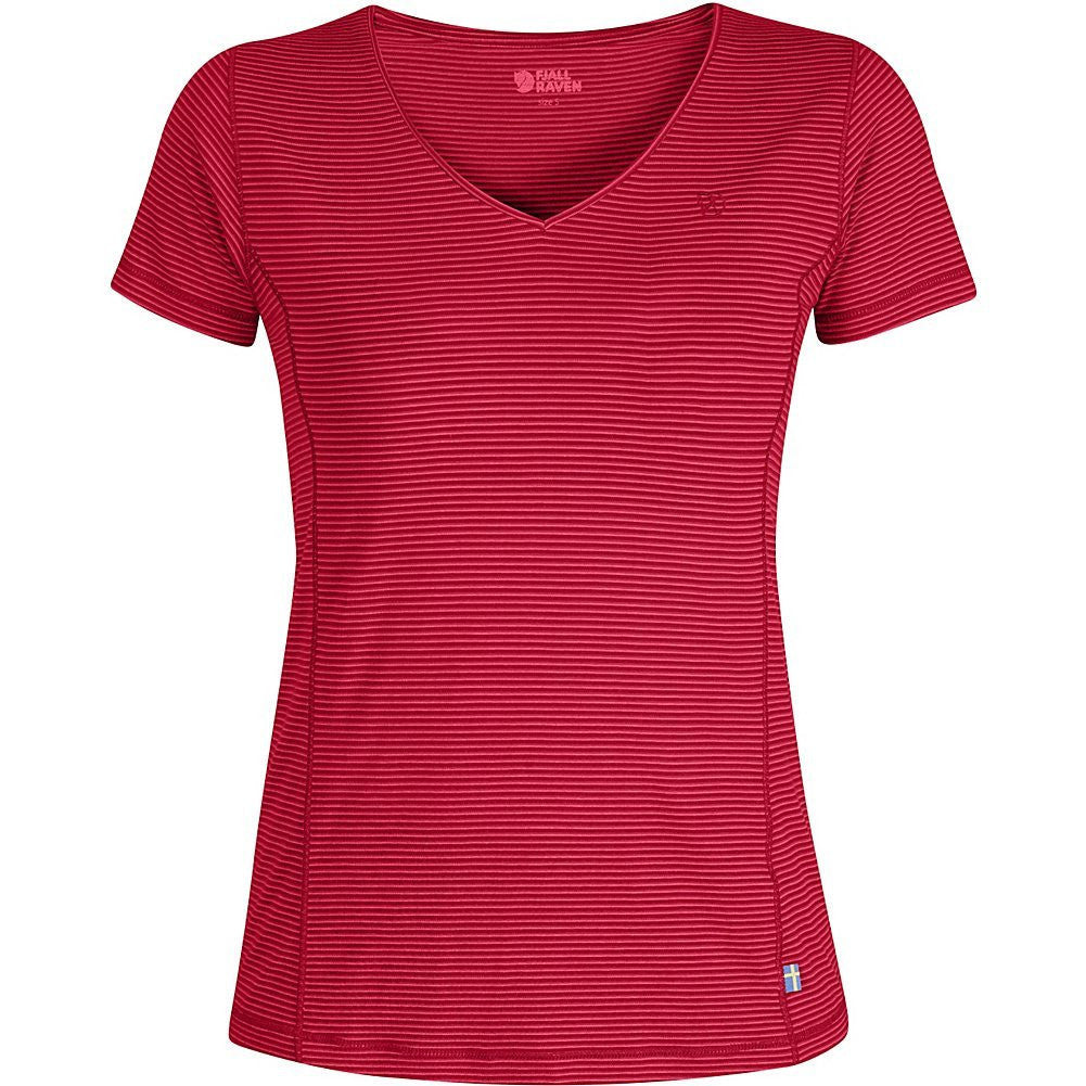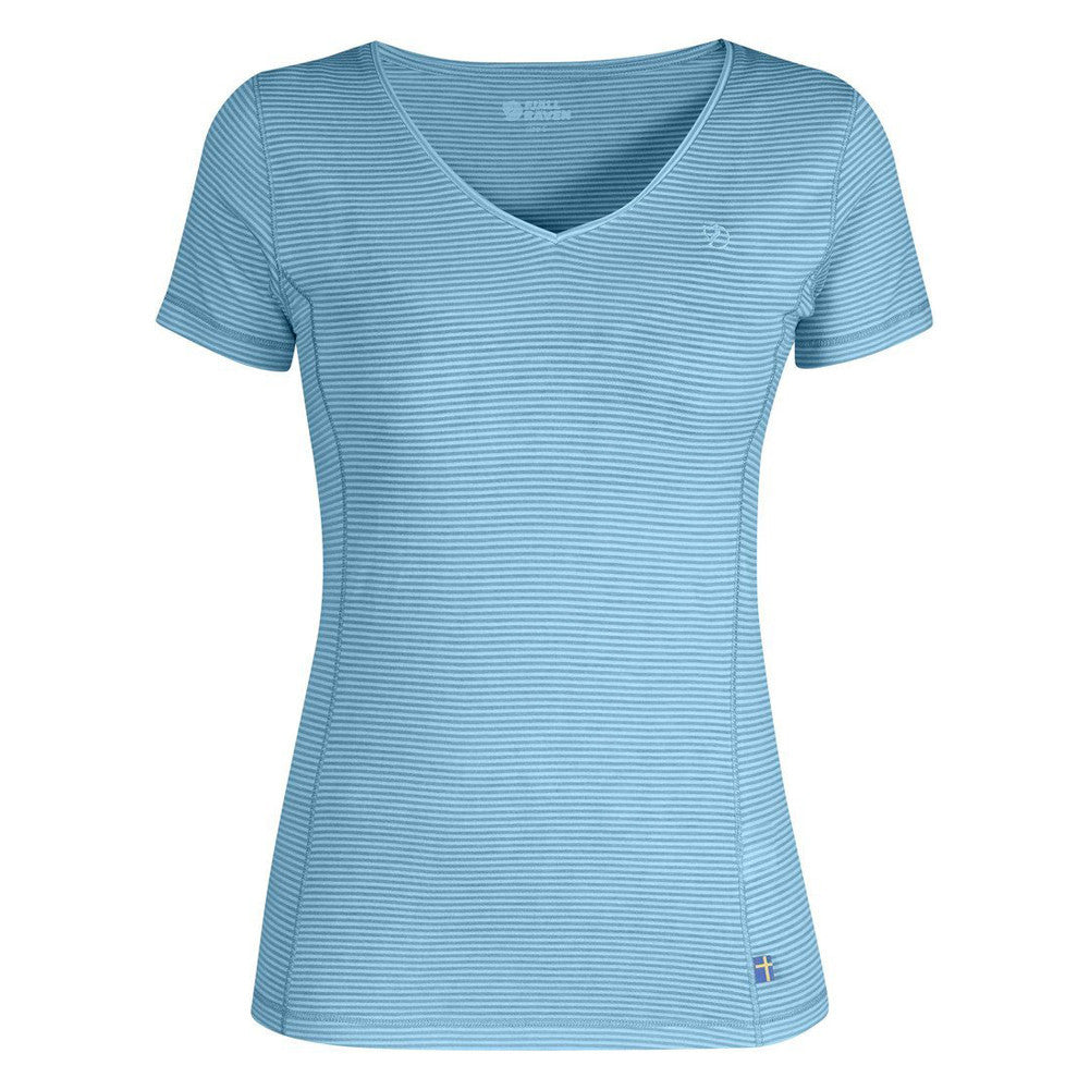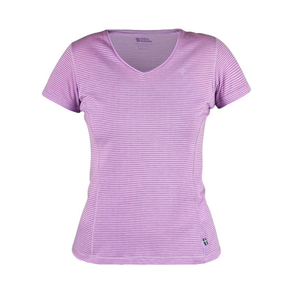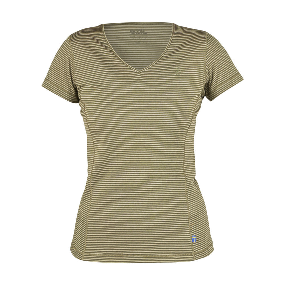 Short-sleeved t-shirt with an attractive fit and V-neck. Just as comfortable when trekking as when travelling in warm climates. Made from pliant functional material with tencel and organic cotton that wicks away moisture and gives a comfortable feel against the skin. Details: 50% lyocell, 25% viscose, 19% organic cotton, 6% recycled polyester outer material, attractive pattern with thin stripes in similar nuances, flat lock seams prevent chafing, wash with similar colors. Material: Lyocell, Viscose, Organic Cotton, Recycled Polyester.