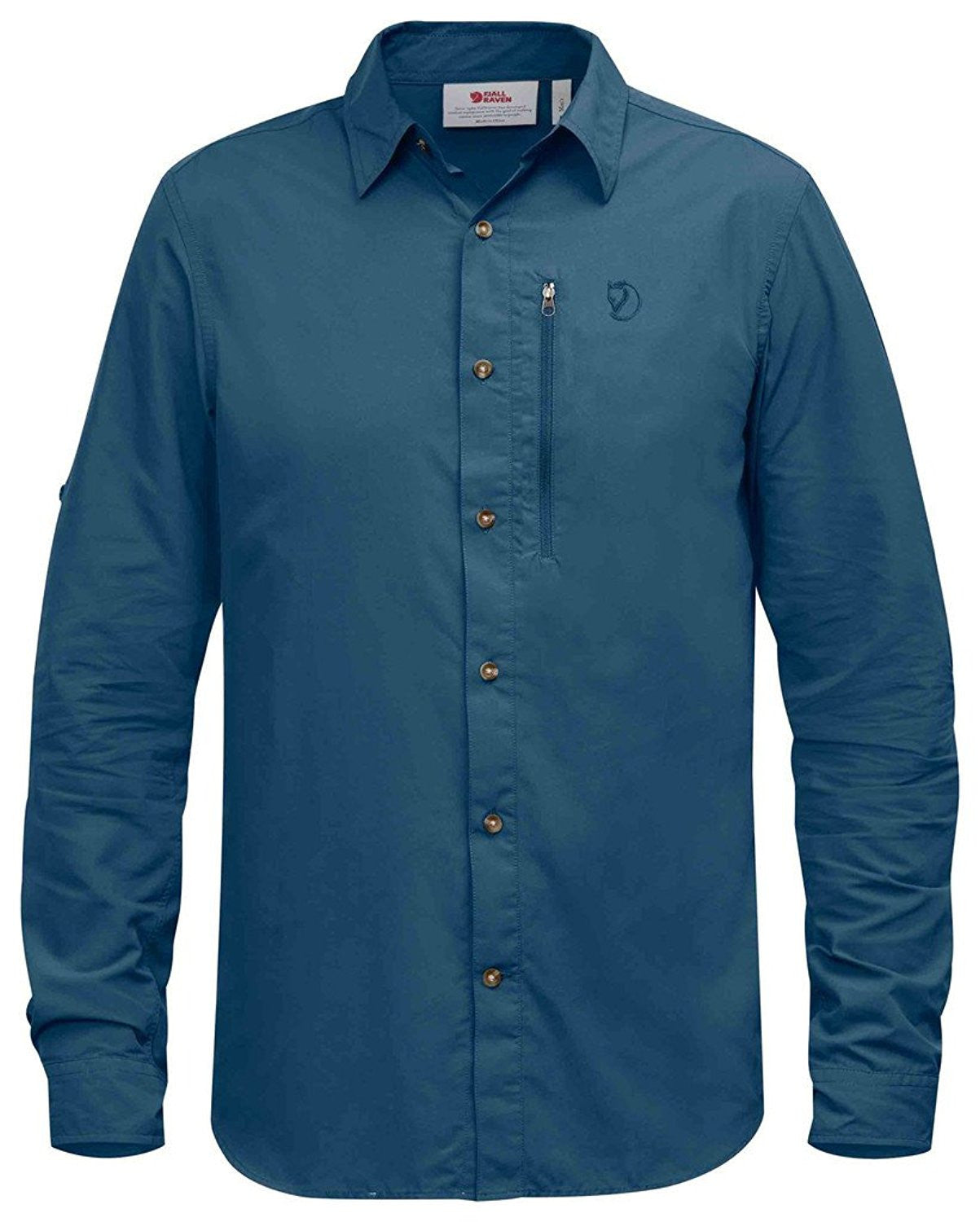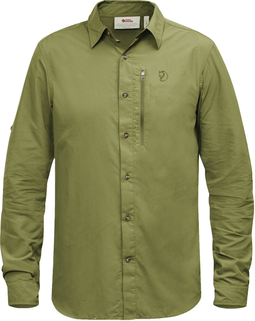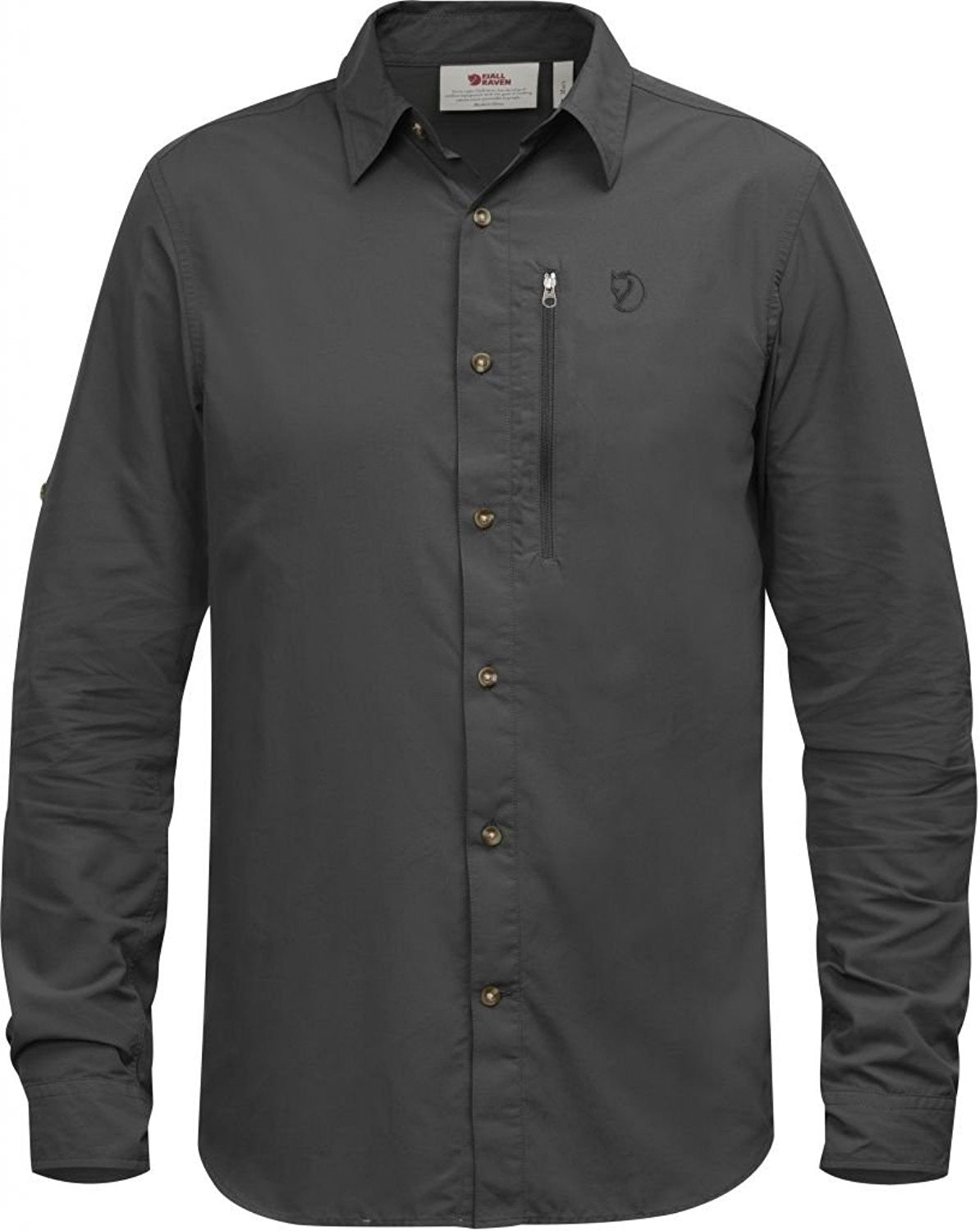 Lightweight, comfortable long-sleeved shirt for trekking and outdoor life in the summer. Made from a soft, functional fabric that wicks away moisture and feels cool against the skin. A convenient garment that takes little space in a pack - practical when space is limited. Well-fitting cut and ventilation opening at the yoke to release excess heat. Buttons at the front and a vertical chest pocket with zipper and mesh lining. Sleeve buttons keep rolled-up sleeves in place. Built in UV protection, UPF20. Material: Polyamide.