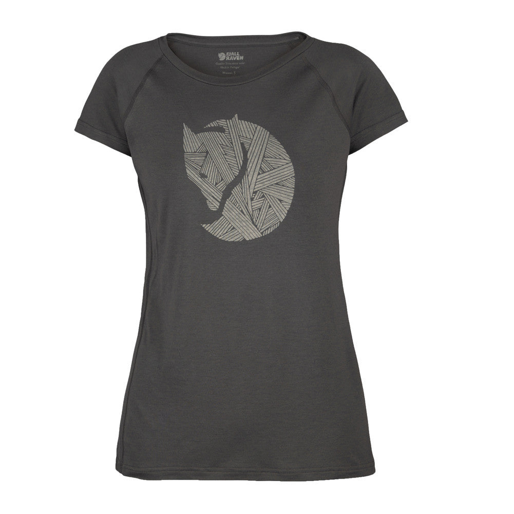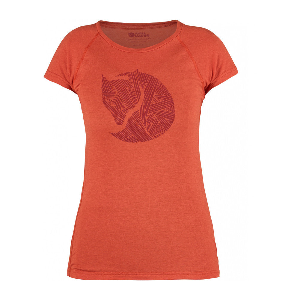 Short-sleeved t-shirt in cool functional fabric made from wool and tencel. A practical and easily cared for garment for trekking and travelling in warm climates, where the wool transports moisture away from the body and resists bad odours, while the tencel makes the garment drape well and feels comfortable against the skin. Well-fitting, feminine cut with wide neckline and raglan sleeves. Printed with the Fjallraven logo on the front. Details: 85% lyocell, 15% wool outer material, narrow, flatlock seams minimise the risk of chafing. Material: Lyocell, Wool.
