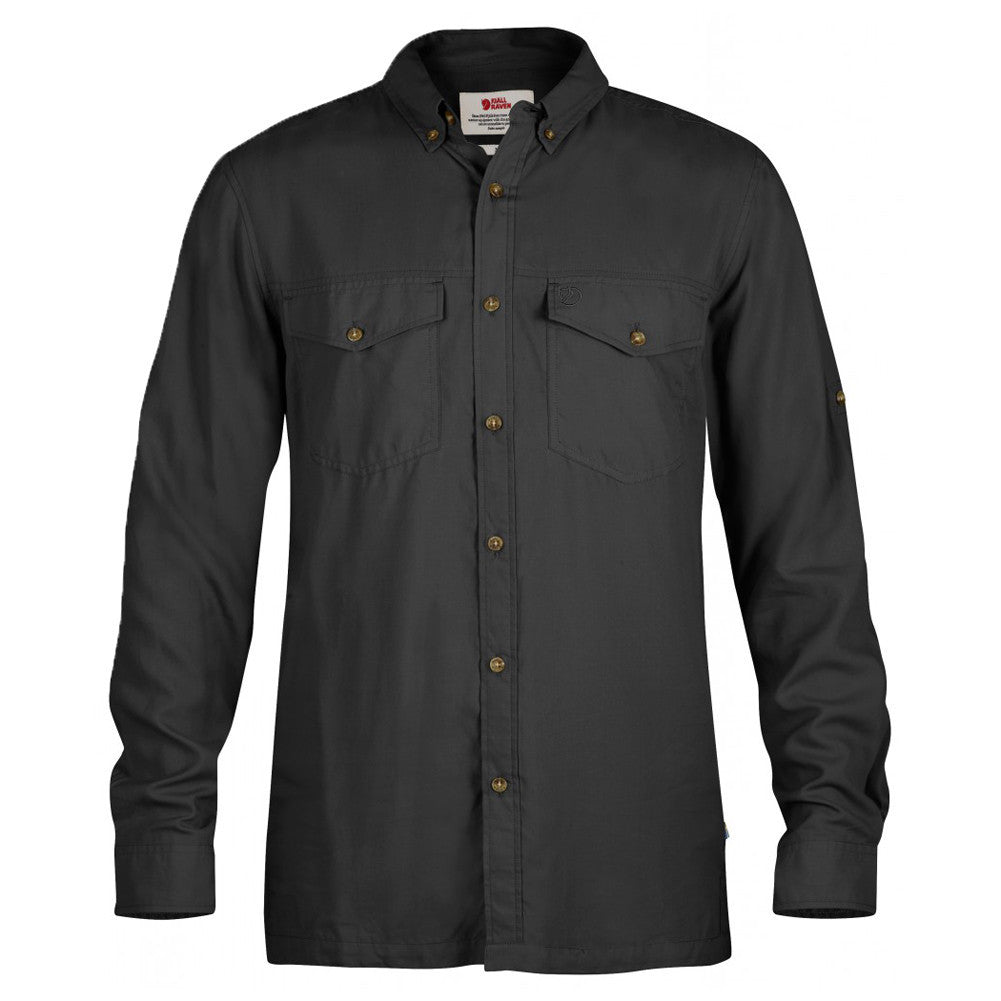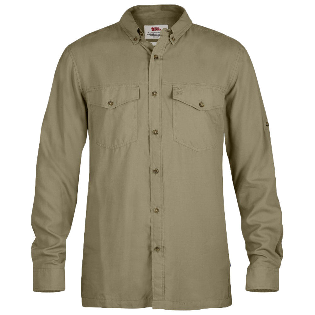 Light, long-sleeved trekking shirt in moisture-wicking lyocell with a comfortable feel against the skin. Perfect for trekking and traveling adventures in warm climates, with a ventilation opening in the yoke and mesh gussets under the arms for extra ventilation on hot days. Features: Regular fit with a button-down collar and two chest pockets with flaps, sleeve buttons keep rolled up sleeves in place, straight cut with slits at the sides. Material: Lyocell.