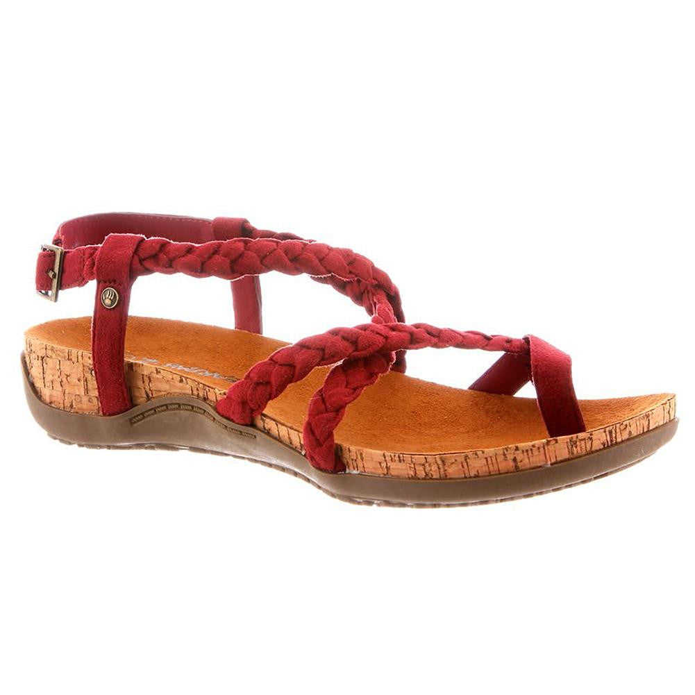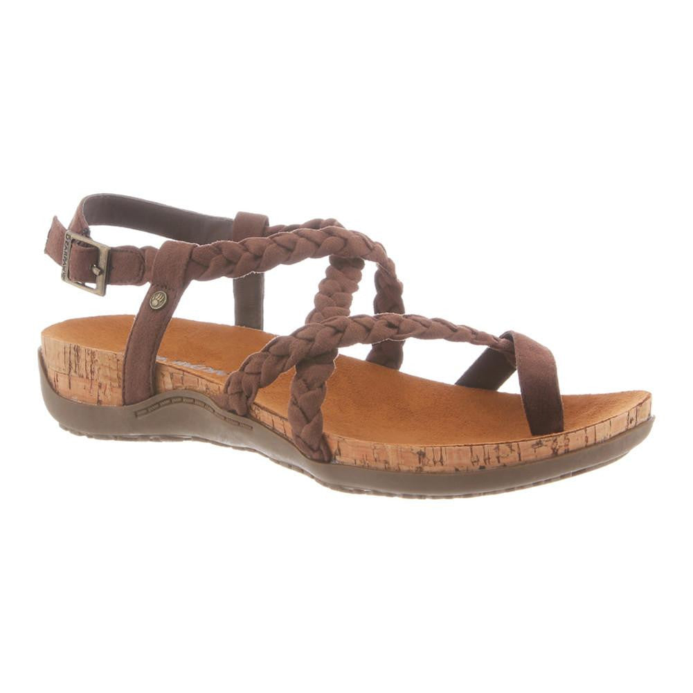 Cecilia, toe loop slingback sandals with braided criss-cross strap and Bearpaw buckle trim. Made of soft premium microsuede upper, cork wrapped PU midsole, TPR outsole and contoured microsuede footbed. From Village Collection - gives you the freedom to go from day to night, work week to weekend and from the party to the after party. Strappy, stylish and stunning...will inspire you to take your outfits to the next level of fashion. Material: Microsuede, Thermoplastic Rubber.