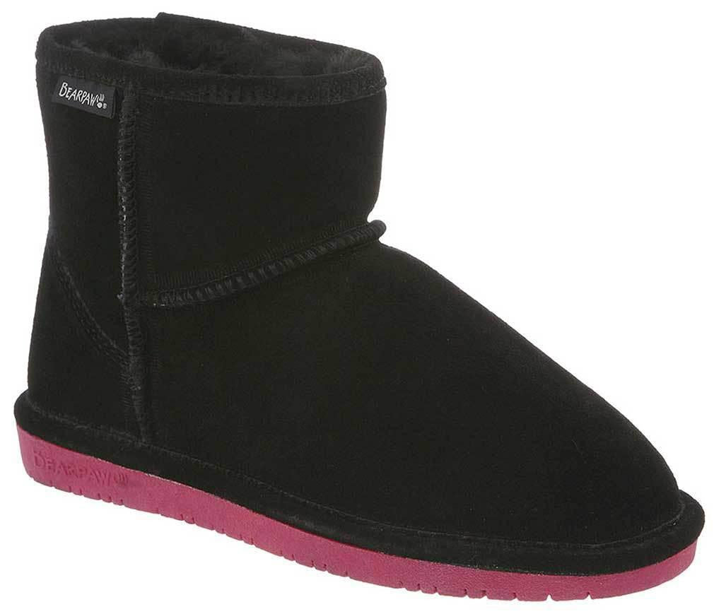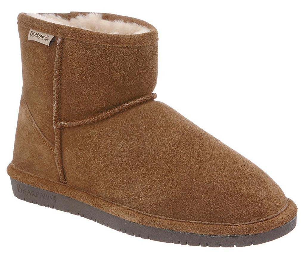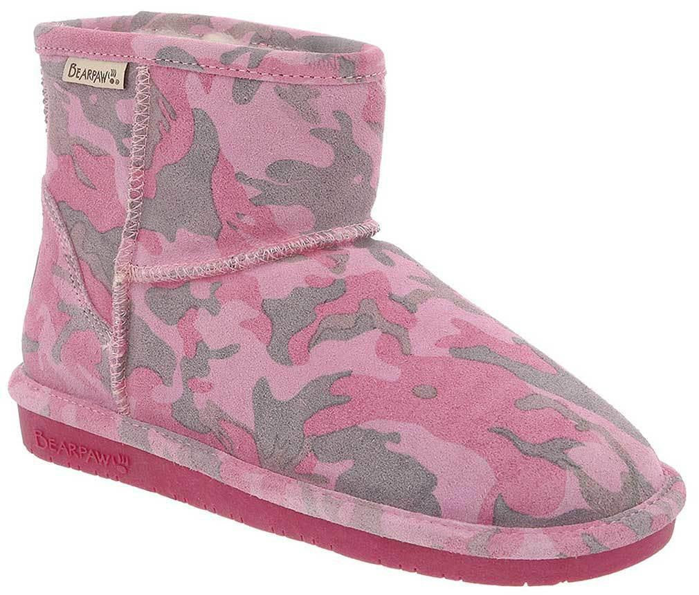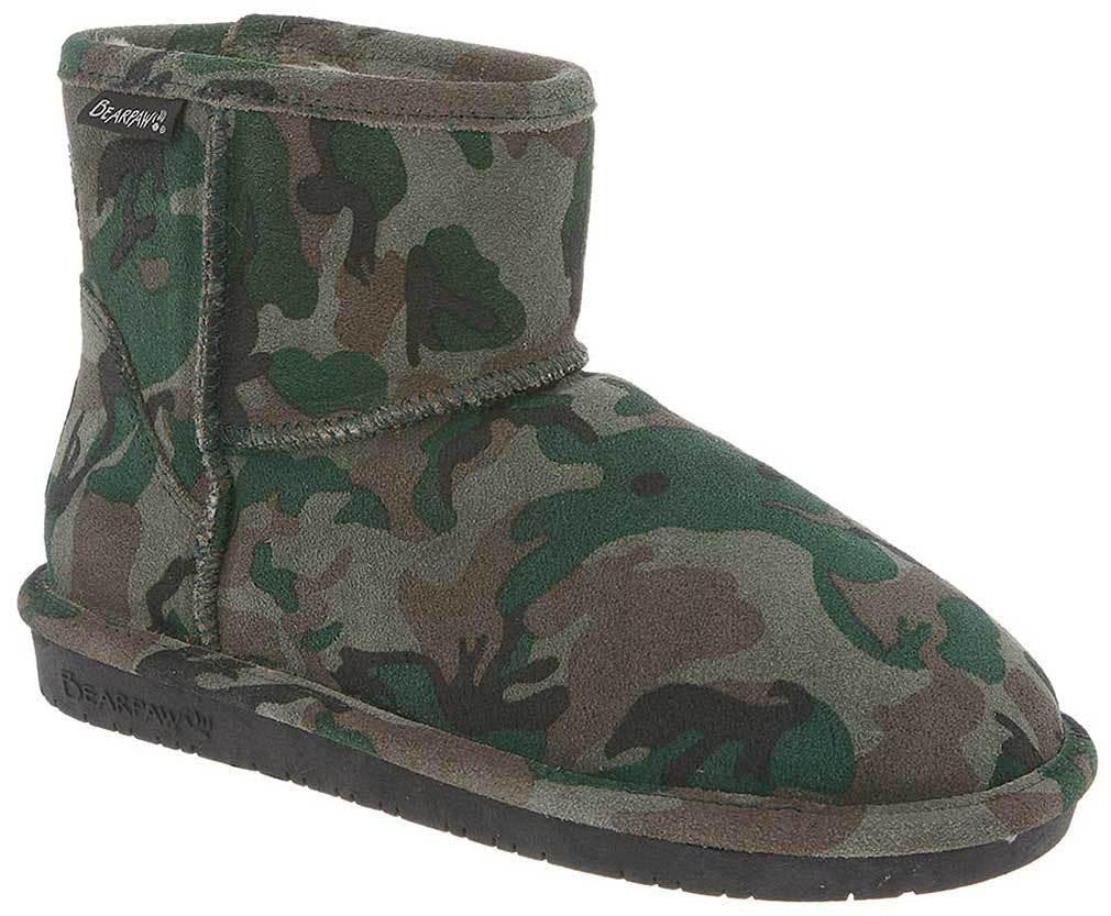Whether you choose the fun camo print, or a solid color, you are sure to look 'Demi-licious' in this short and sassy boot. So easy to pull on and off, you could wear it as a slipper too! 5'' tall. Cow suede upper. Sheepskin and wool blend lining. Sheepskin footbed. Woven heel and collar logos. Classic low profile TPR outsole.