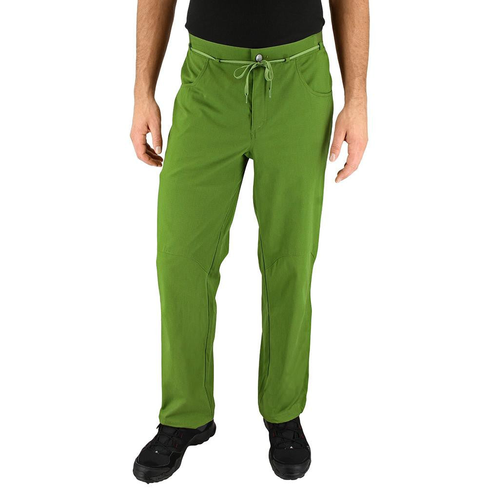 Mens climbing pants made of a soft and flexible material to support the sport specific movements. With fully elastic waistband with drawcord for a relaxed fit, two front pockets and one back pocket. The pents have a cord at bottom leg hem for adjustment. Material: Cotton, Polyester, Elastic Ripstop.