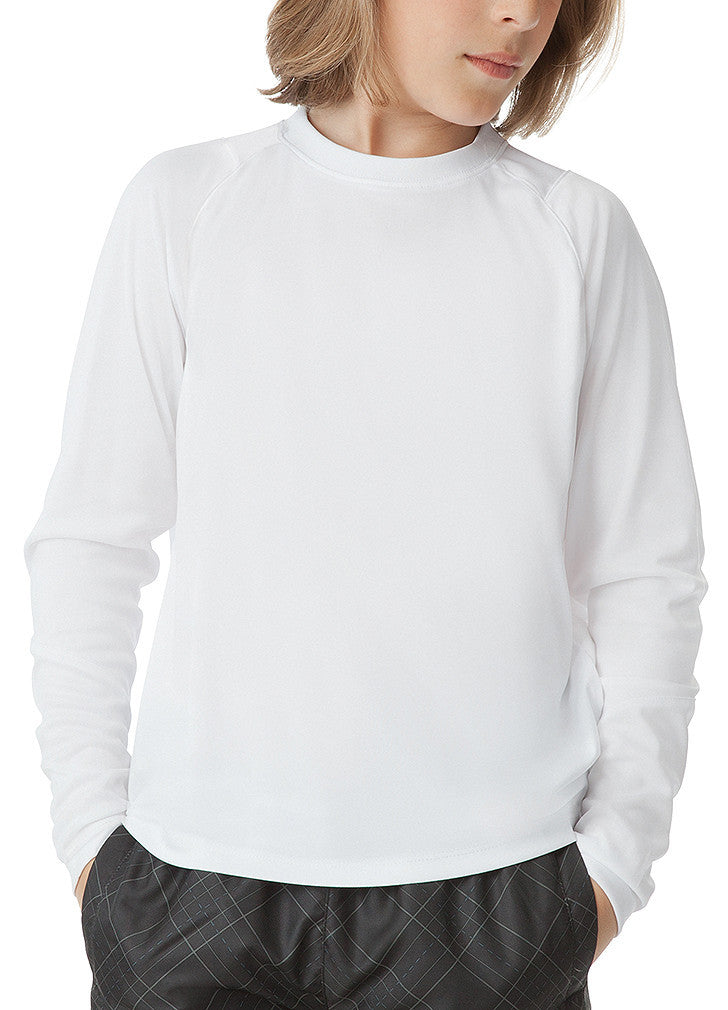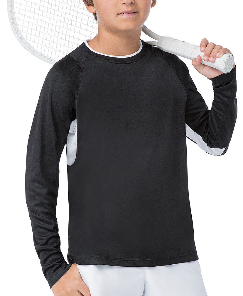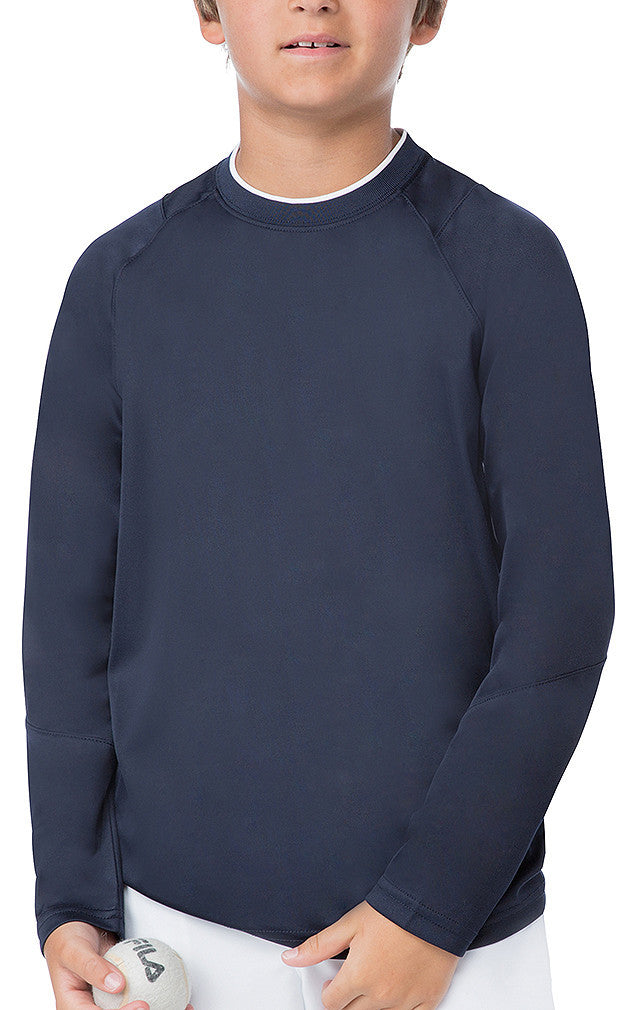 The Fila Boy's Fundamental Long Sleeve Tennis Top is a simple and stylish way for your young tennis star to keep warm while he plays! Block out the cold without getting too warm in its CoolBest poly interlock fabric. You will feel 2-4 degrees cooler than when wearing other fabrics and a mesh panel at the back makes this a great warm up top to play in. Built-in UV protection blocks your skin from harmful sun rays while moisture wicking properties keeps sweat off the skin! Fila embossed elastic neck tape for a unique detail. Silver cut out F-Box logo at back neck. Material: Polyester, mesh.