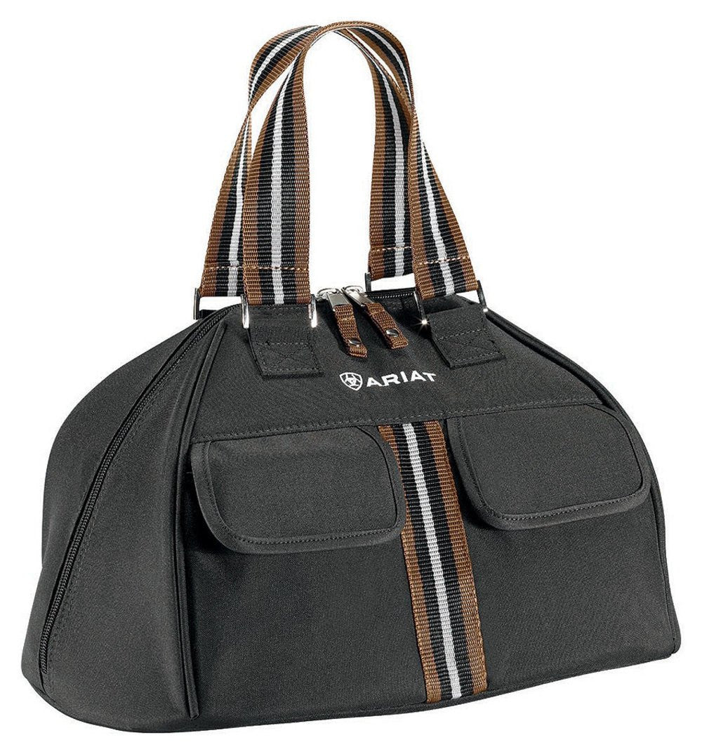 A durable, attractive tote for your helmet and accessories. Constructed of durable poly canvas with striped web handles. The Hard Hat Bag features multiple exterior pockets with magnetic closures for securing your personal belongings and a large compartment with a firm flat bottom to seat your helmet. Dimensions are 10" high, 11.5" wide, and 11" deep.