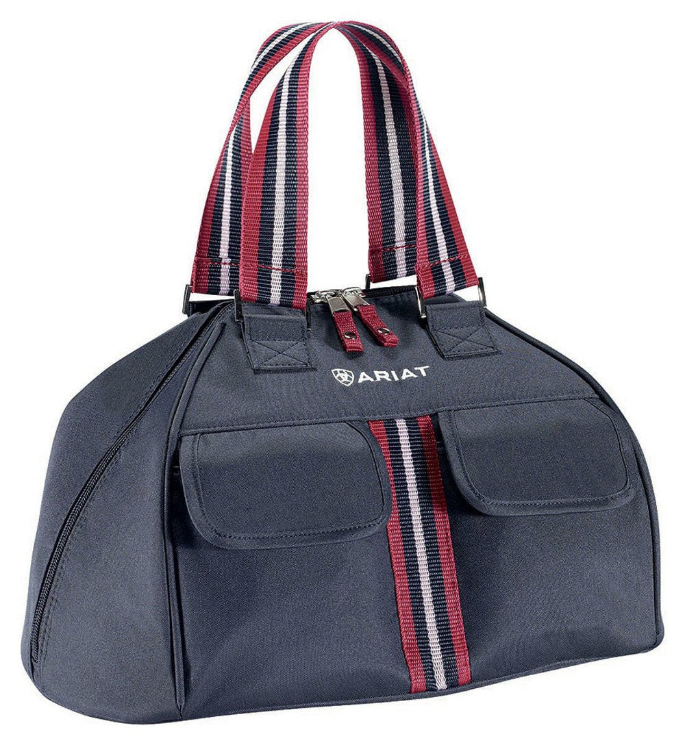 A durable, attractive tote for your helmet and accessories. Constructed of durable poly canvas with striped web handles. The Hard Hat Bag features multiple exterior pockets with magnetic closures for securing your personal belongings and a large compartment with a firm flat bottom to seat your helmet. Dimensions are 10" high, 11.5" wide, and 11" deep.