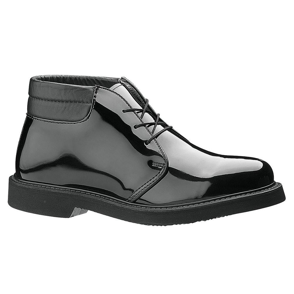 You shine on the job everyday in this high gloss, lace-up chukka. From their padded collar to breathable linings to fully cushioned removable footbed, these boots are designed to keep feet comfortable during even the longest shift or ceremony. The oil-absorbing and slip-resistant Bates Lites outsoles provide sure footing over any surface. And durable Goodyear welt construction assures these boots last a long, long time.
