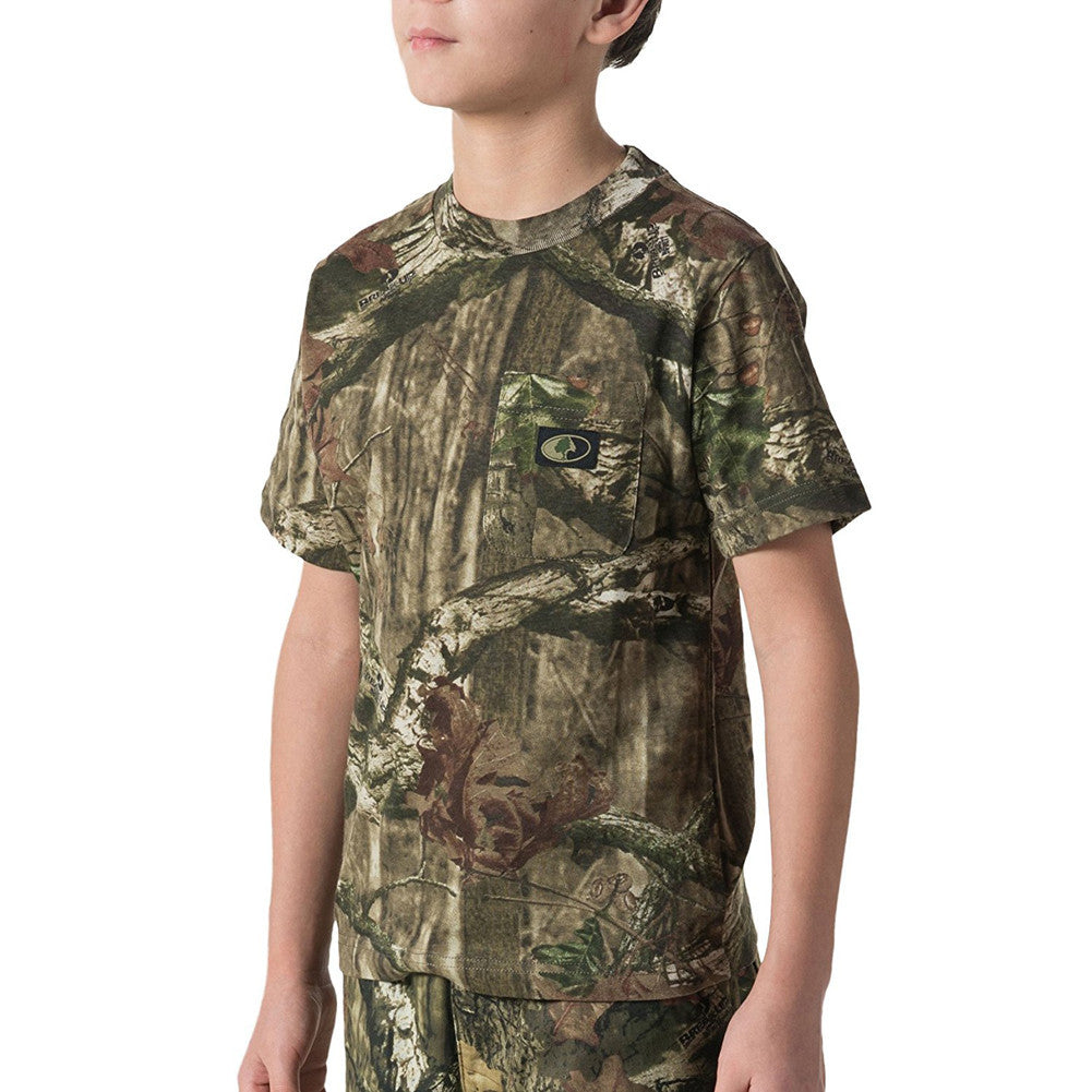 For the hunter that would rather be in the woods than any other place on earth. Small details make this shirt a no-brainer for your small ones. Chest pocket and tagless construction signal a shirt that really works. Full collar and cuff printing in several patterns gives the full camo look. With short sleeves for non-stop action. Material: Cotton, Polyester.