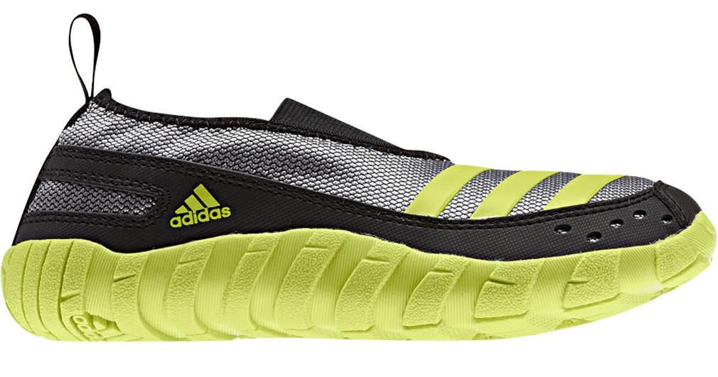These adidas Jawpaw kids' shoes have a snug wraparound design and an open mesh upper that breathes on dry land and drains quickly in the water. And with elastic at the shoes' opening, they slip on with ease and stay on comfortably.