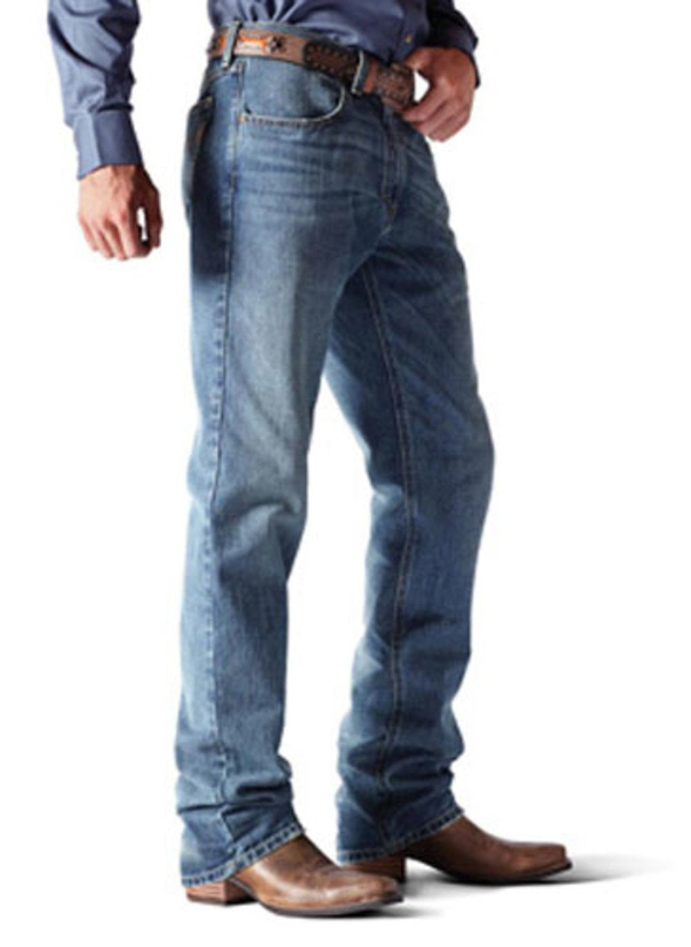 These Ariat M2 jeans are a relaxed fit style with bootcut leg. The M2 is relaxed in the seat, hips and legs along with being made to fit down lower on the waist. The Granite denim fabric is a medium wash with subtle hand sanding and grinding along with whiskering on the thighs. Ariat is meticulous in the details of each jean with things like no-chafe inseams, extra deep front pockets and leather reinforced back belt loop. With stackable bootcut with a 18" opening.