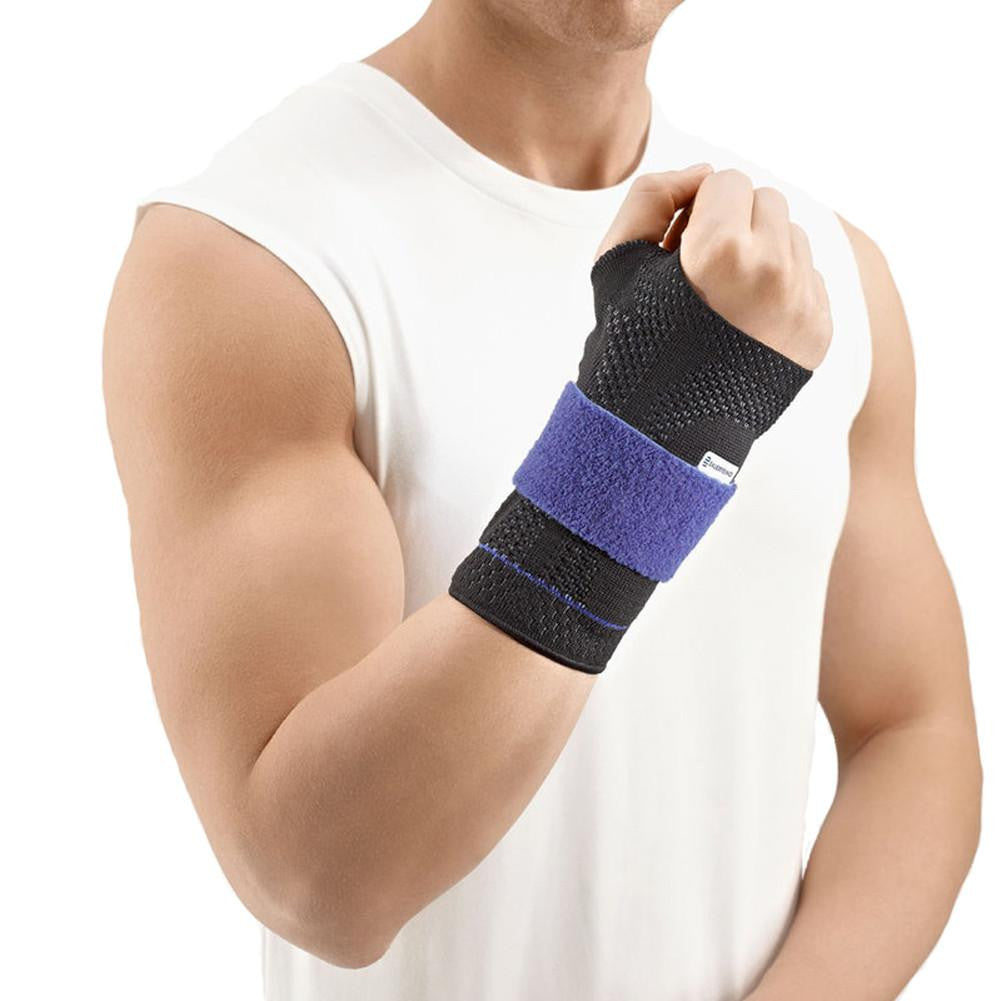 Bauerfeind's ManuTrain wrist braces and supports provide stability and comfort to painful wrists. ManuTrain wrist supports take the strain off your wrist and provides pain relief. To do this, the flexible soft knitted fabric has padded inserts incorporated into it, which takes pressure off nerves and blood vessels and provide soothing pain relief. The brace conforms to your wrist shape for a secure hold. The ManuTrain brace takes the strain off your wrist and soothes wrist pain. Gentle compression accelerates the healing of soft tissue irritation. ManuTrain is useful for Carpal tunnel syndrome, inflammation of the tendon in the wrist, arthritis, overuse, or following an injury. As you move your hand, the support reacts and provides a massaging effect for soothing pain relief. An adjustable strap lets you control the amount of compression for excellent comfort and an adaptable stay can be added for even more stabilization. Adding to the level of comfort, the soft, machine-washable knit fabric is lightweight and breathable. To wash, machine wash in the gentle cycle, which helps maintain its elasticity and original fit. Material: Knit Fabric, Viscoelastic.