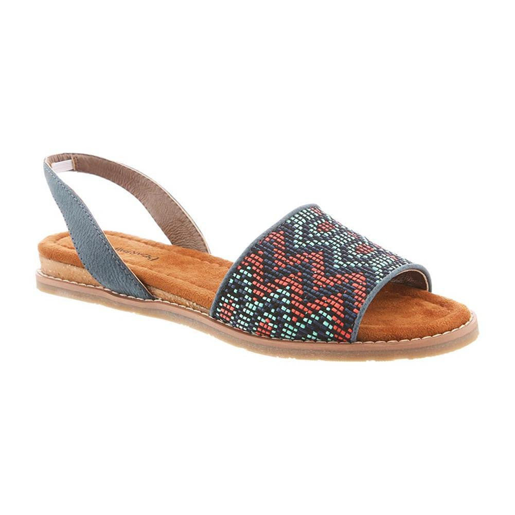 Embrace the fun and versatile look with this global inspired texture slingback sandal. Featuring bright colors and fun patterns, the Meeka will make you feel like a fashionista of the world. This Slingback Sandal feature: textured fabric wide band, stretch gore on back strap for heel grip and flexibility, microsuede wrapped footbed, 6mm flexible rubber outsole. Material: Fabric, Rubber.