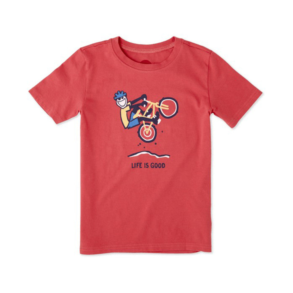 Fine cotton create a just-right, lighter-weight wearability. The t-shirt he's never going to want to take off. Life is Good new kid's t-shirt have the same laid-back style and easy going vibe as LiG original classic. Colorful, fun, and the picture of optimism just like dad's. Garment washed for softness so it'll feel like an instant favorite. Why should grownups have all the fun? Details: 100% cotton, garment washed for softness, rib at the neck, printed graphic. Material: Cotton.