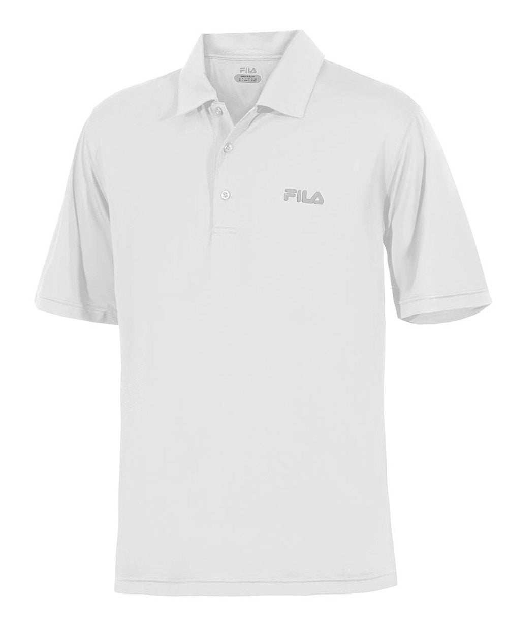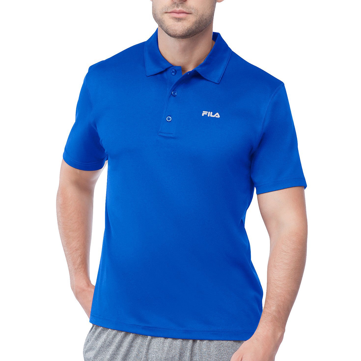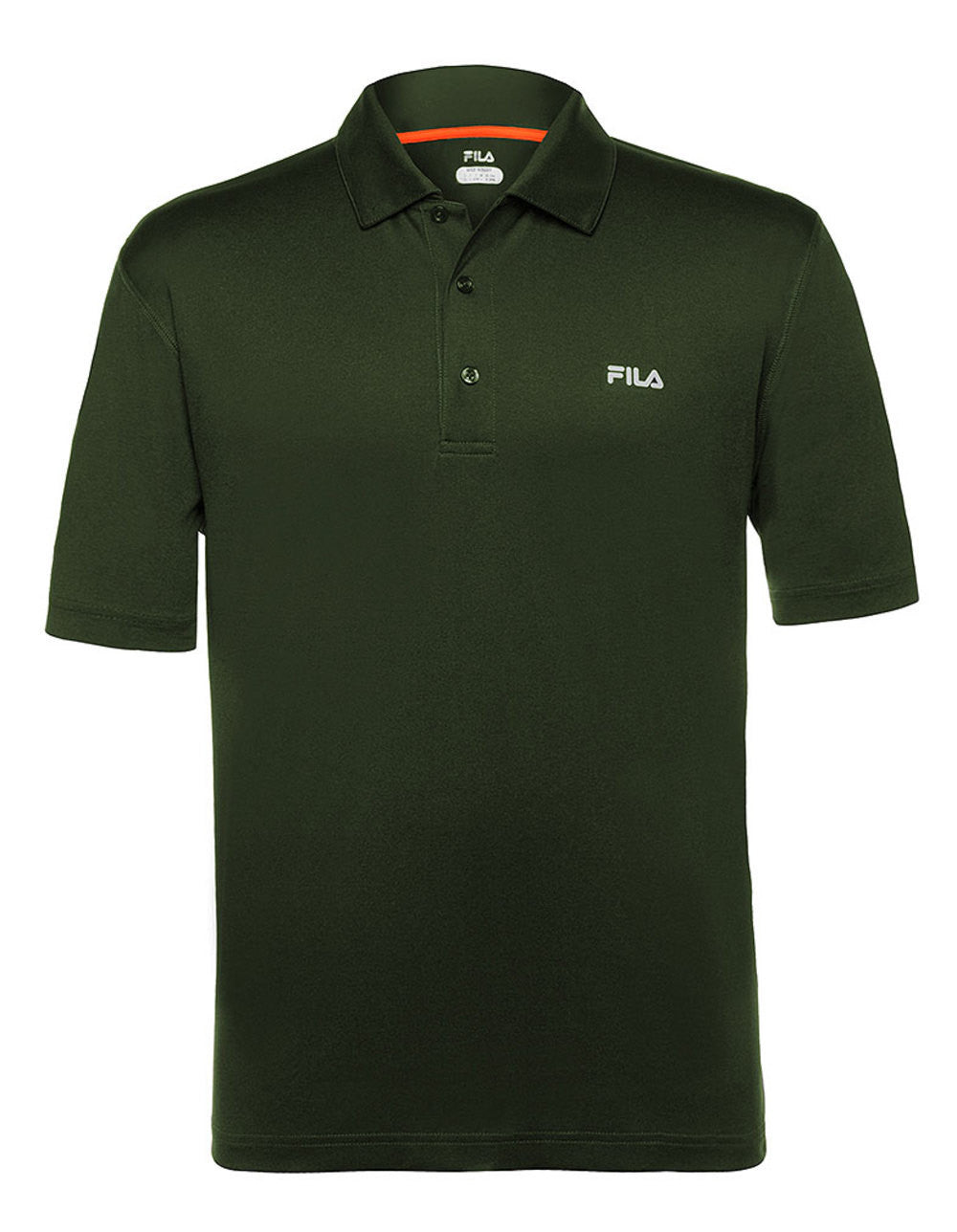 Stretch Heather Jersey: 96% polyester/ 4% spandex. Wicking fabrication pulls moisture away from your body. Reflective silver heat transfer Fila logo. Set-on sleeve. Three button placket. Self fabric collar.