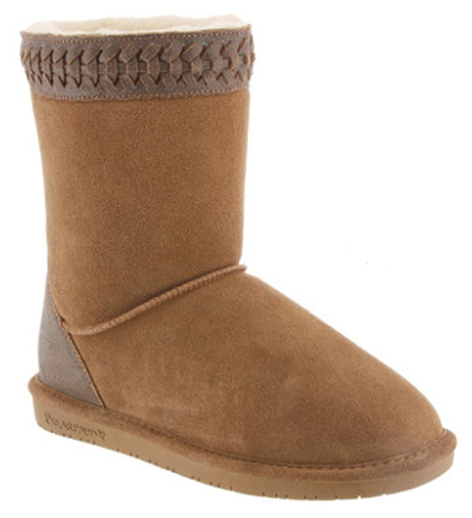 A stylish upgrade from the Emma. Sheepskin naturally regulates body temperature so feet stay cooler and drier in the heat and warmer in the cold. Detail on top collar and heel counter. Low profile TPR outsole. Material: Suede, Sheepskin.