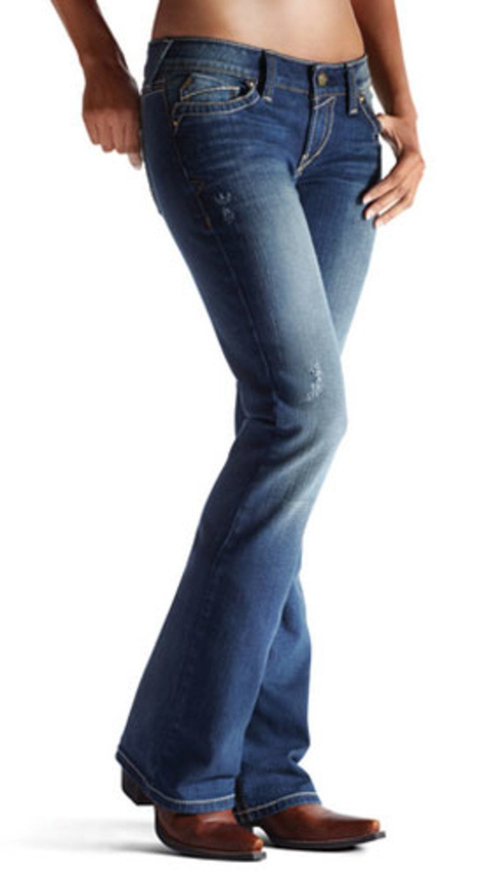 These women’s Ariat Ruby Slim Fit Jeans fit slim and sexy through the hips and thighs, low rise, boot cut, contoured waistband and a touch of stretch. The heavy decorative embroidery really set this jean apart from the rest! With the true fit waist band these jeans hug your waist to flatter every curve. This dark stonewash jean features five pocket styling and zipper fly with top button. Imported.