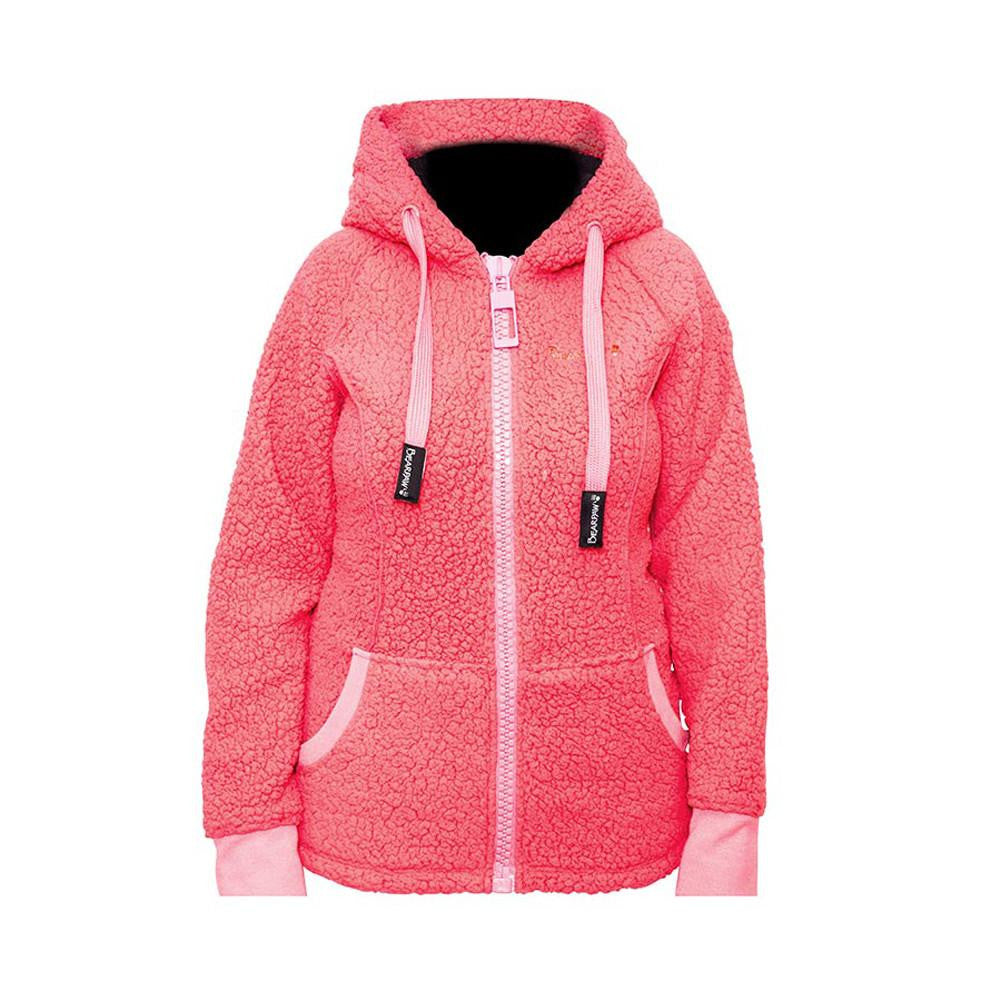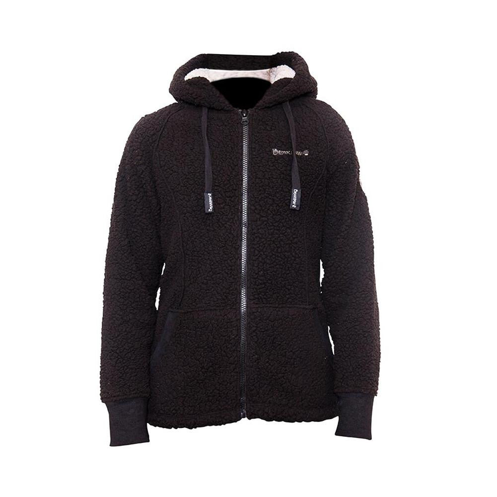 A hooded, polar fleece jacket designed for maximum comfort with a fun twist! Featuring cute, subtle bear ears on the hood for a one of a kind look. 100% Polyester polar fleece. Two front pockets. Material: Polyester, Fleece.