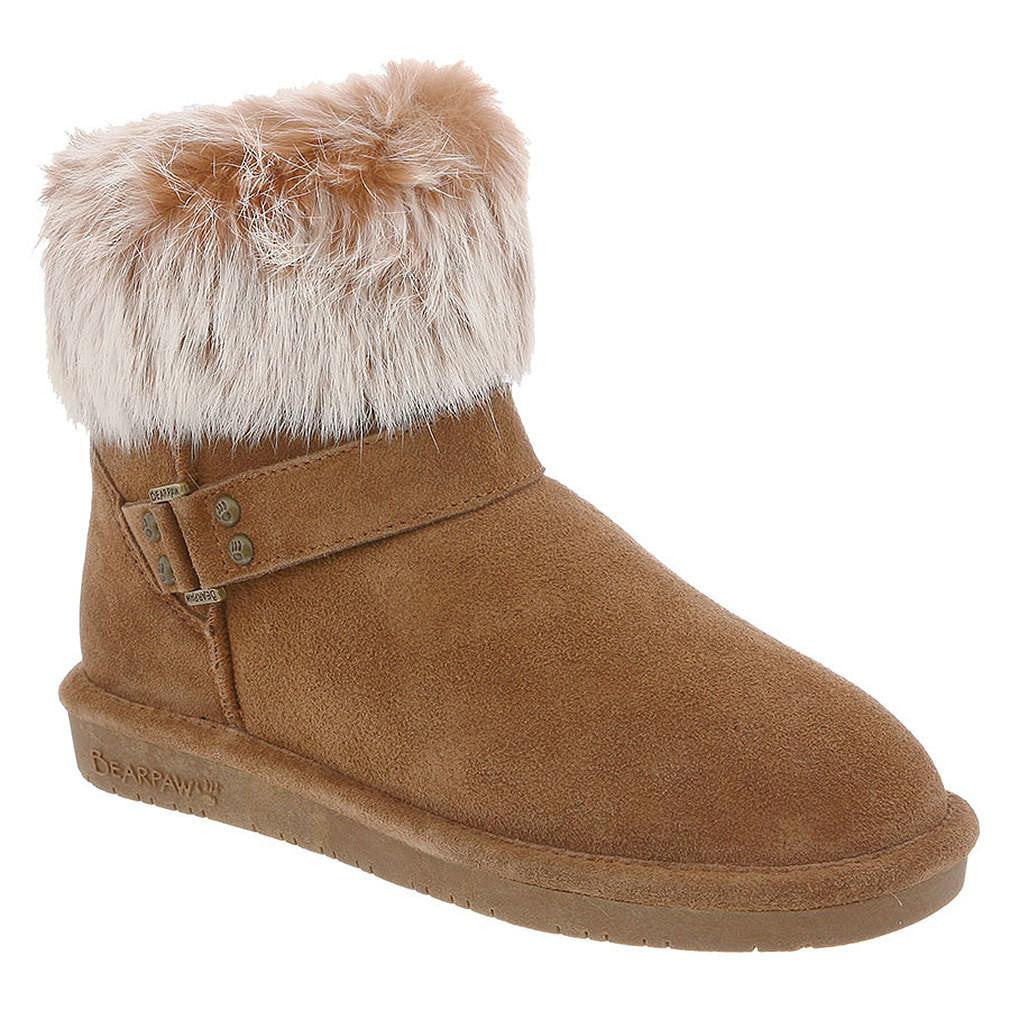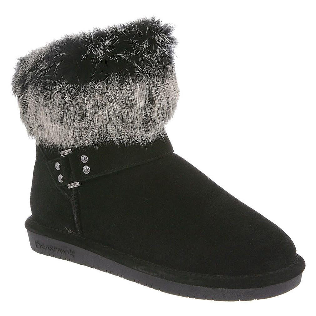 Gear up for those winter blues in these darling Tigris boots! The low 5.5' shaft makes them easy to pull on, and the rabbit fur collar adds that cozy look. Add a furry hat and scarf, and you will look and feel like a winter princess! 5.5'' tall. Cow suede upper with rabbit fur collar. Wool blend lining. Sheepskin footbed. Woven heel logo. Classic low profile TPR outsole.