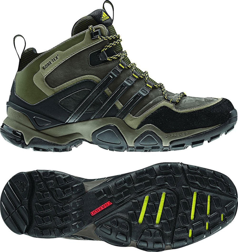 Push the pace in the Adidas Trans X Mid Gore-Tex Leather Hiking Boots for men. Whitney in a day, these Adidas hiking boots will keep your feet comfortable, supported and protected. The Trans X boots are made with tough, nubuck and suede leather for a supportive, stable fit, while the waterproof and breathable Gore-Tex membrane seals out the elements without overheating your foot. A molded foam insole provides cushioning and full forefoot adiPRENE+ promotes propulsion and efficiency. Formotion in the midsole and a protection plate keep you stable, while a rugged rubber outsole helps keep you on your feet.