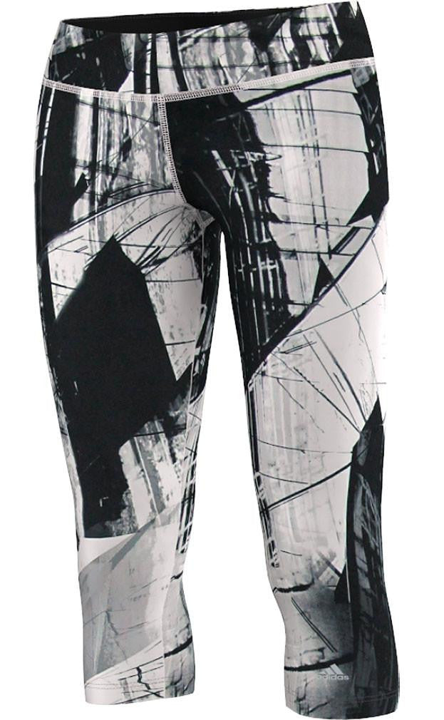 Climalite fabric sweeps sweat away from your skin. Secure waistband. All-over graphic print. Tight fit. 93% polyester / 7% elastane single jersey. 47 cm inseam (size 36).