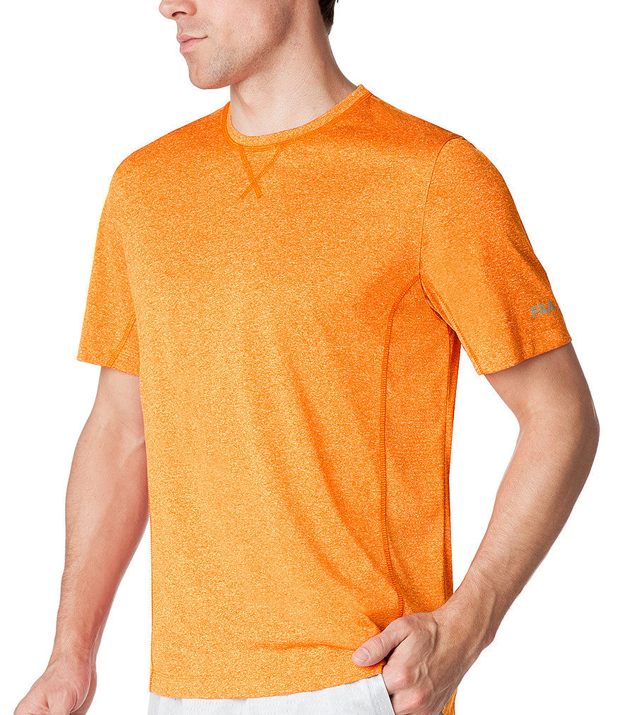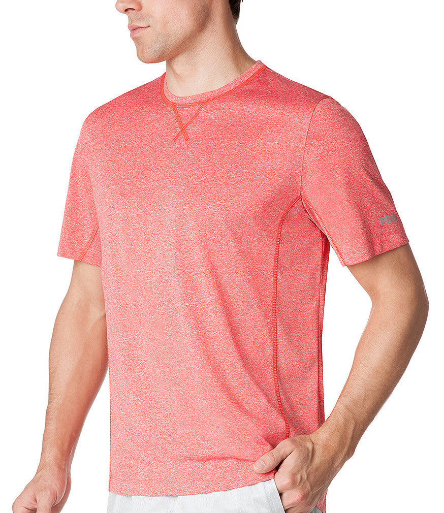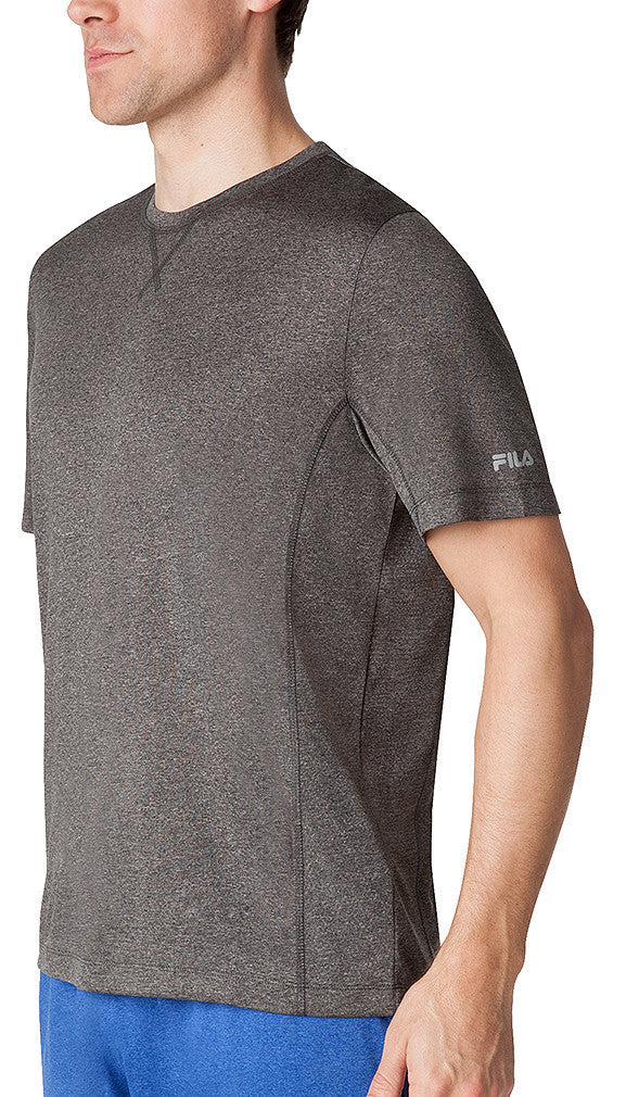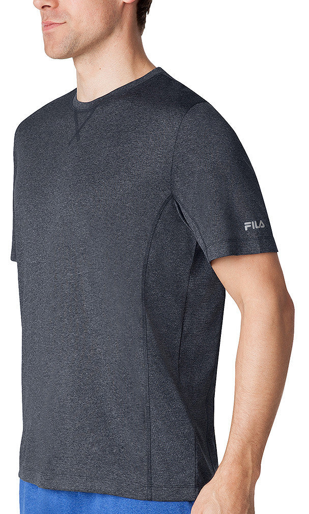Work hard and train hard in this performance top. The lightweight Fila Varsity Heather Crew features a ribbed crew neck, inner neck tape with embossed Fila print, tonal mesh panels at underarms and upper back for increased ventilation, flat seams for comfort, moisture-wicking performance, stretch fabric for enhanced mobility, and a reflective heat transfer Fila logo at left sleeve. Material: Polyester.