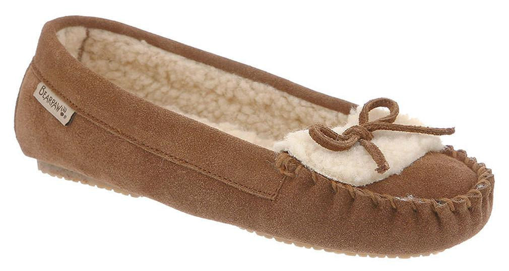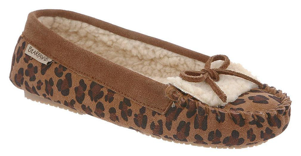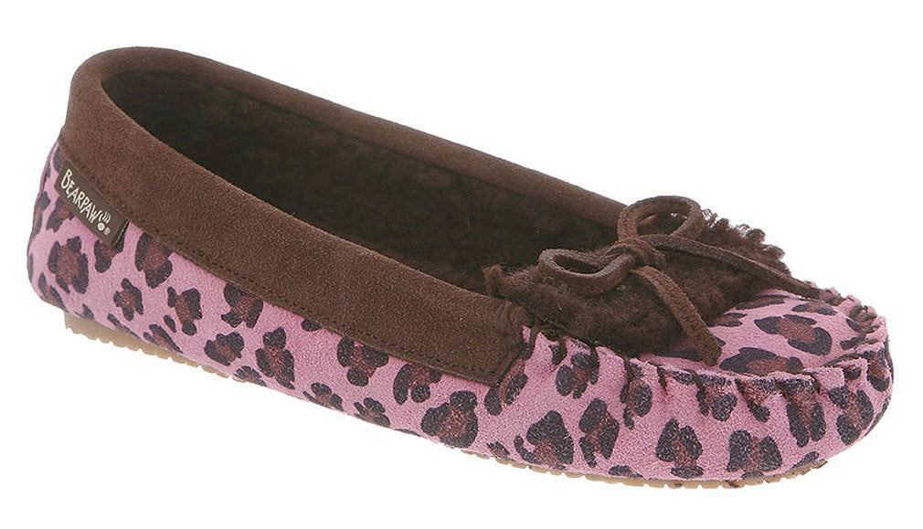 It feels like a slipper but has the style to carry you to and from the office, and all around town. The Venia is perfect for lounging at home, too. This shoe has the versatile style and famous comfort only Bearpaw can deliver. Printed and solid cow suede upper. Berber wool blend lining and footbed. Leather heel logo. TPR outsole with EVA cushion.