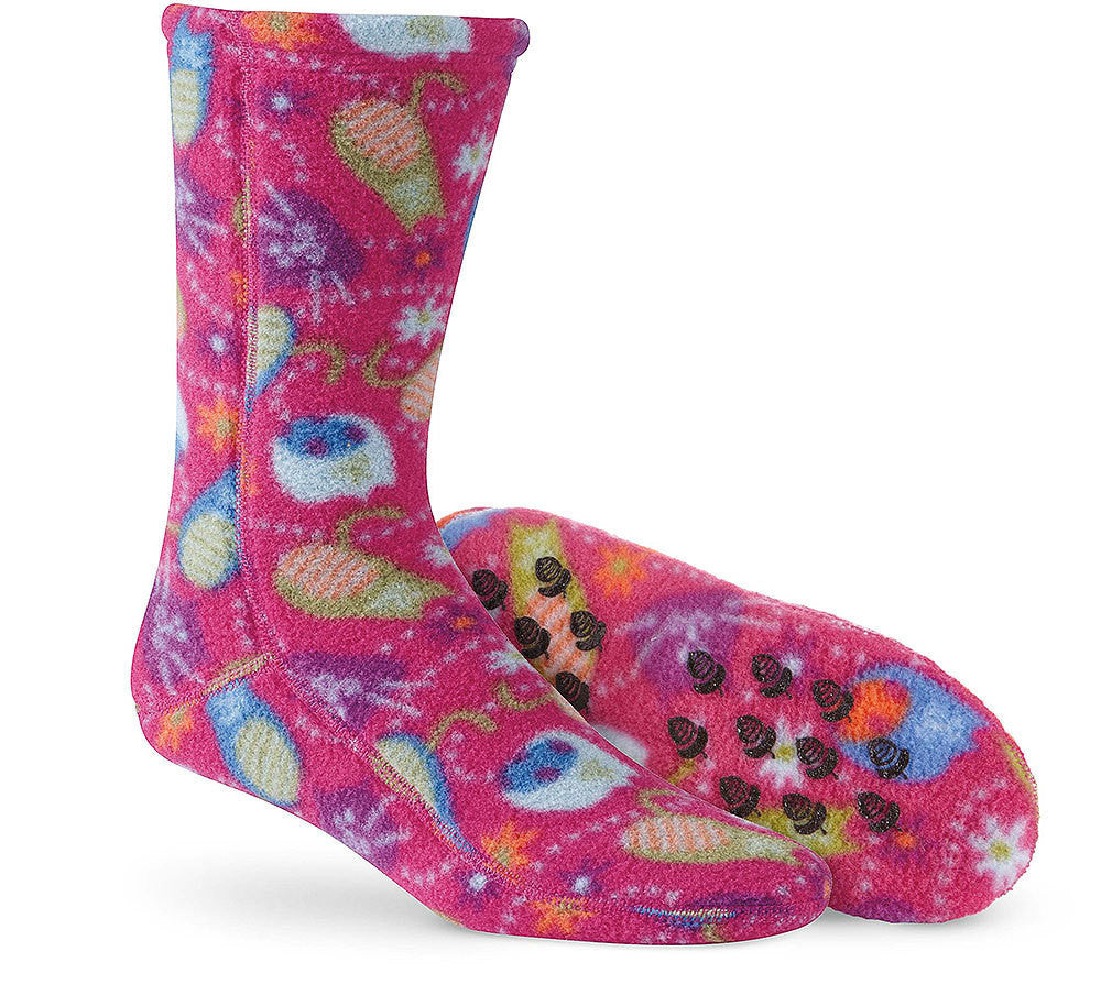 Perfect for everyday wear. Hydrophobic, breathable fleece fibers wick moisture to prevent odor. Patented flat-lock seams. Mid-cut height for versatile wear and secure fit. Skid-resistant latex tread for sure footing. Vegan. Machine wash and dry.