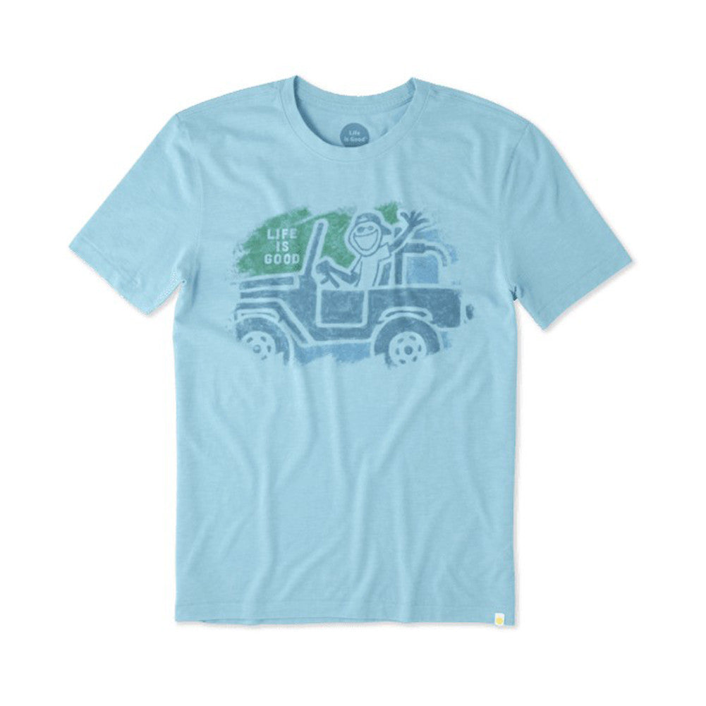 Lightened-up with a laidback feel, Cool T-shirt is garment washed for softness and cut to barely skim the body. Distressed printed graphic gets better with every wear. Details: 50% cotton and 50% polyester blend, classic fit, ladder stitch detail at cuffs, hem, armholes and forward shoulder seams, printed graphic, Life is Good label on bottom hem. Hangs on you, lays on you, moves with you. Material: Cotton, Polyester.